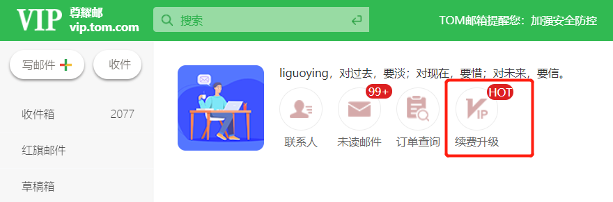续费方式1:登录VIP邮箱点击续费升级按钮